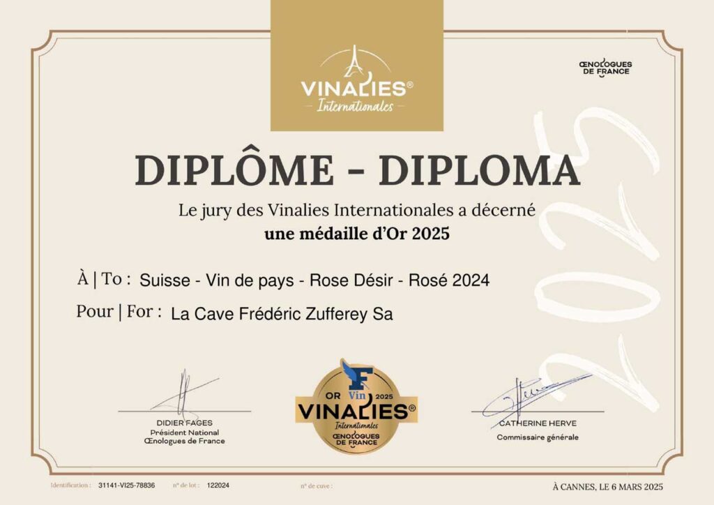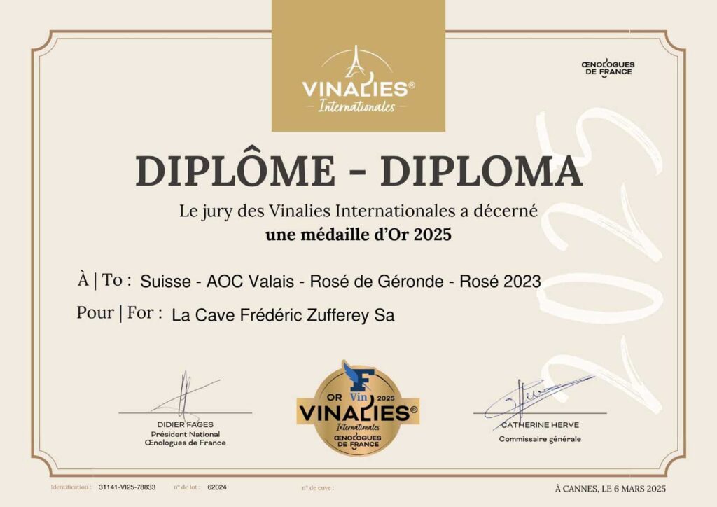Notre Rose Désir et Rose de Géronde 2024 ont obtenus la médaille d’or Vinalies Internationales 2025